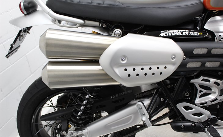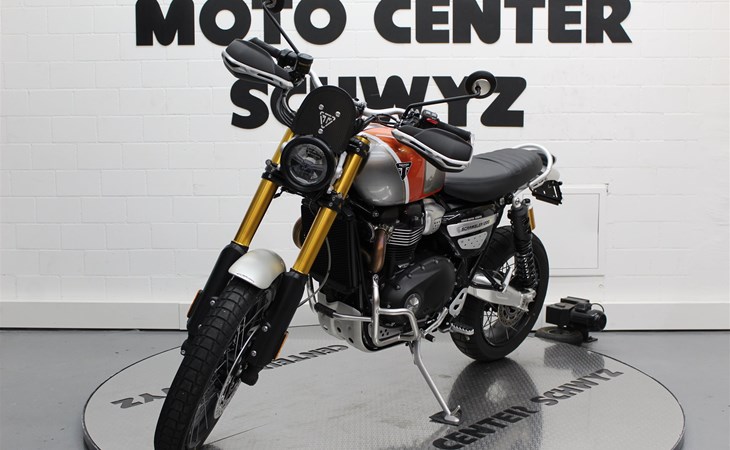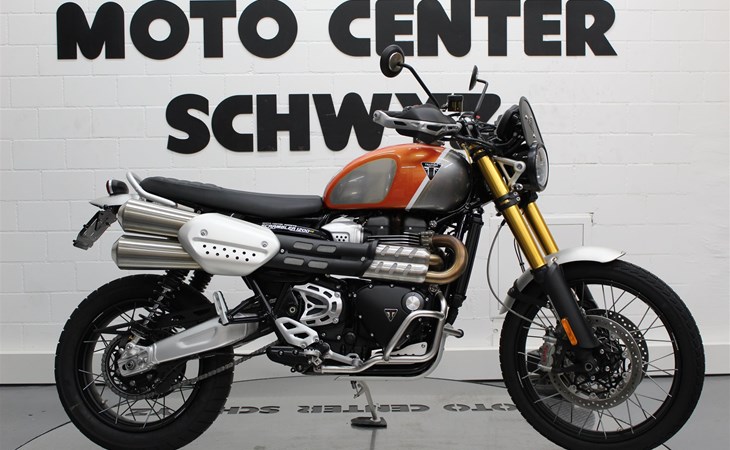 Schöne Scrambler 1200 XE Goldline mit Kurzheck und Kettenöler