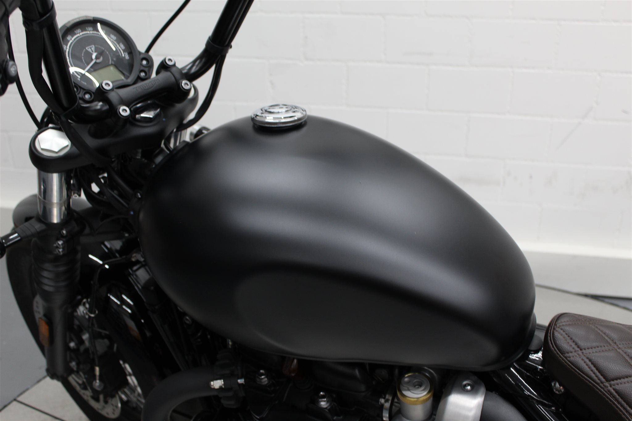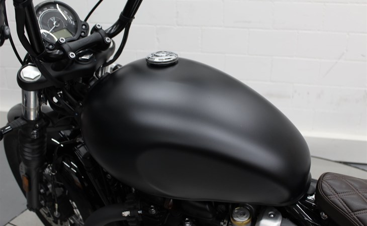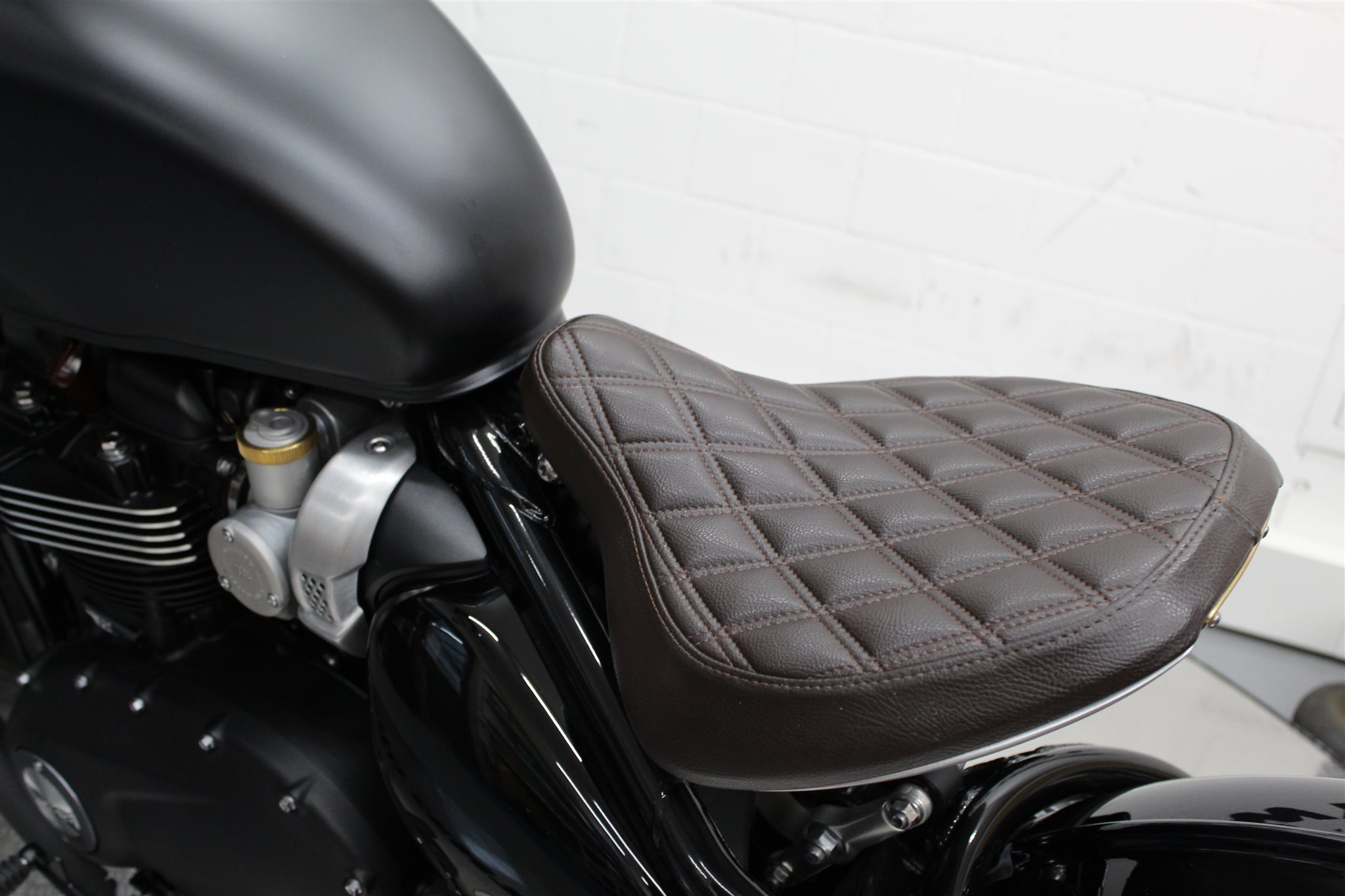 Speziallackierung Schwarz Matt - Hoher Lenker - gesteppter Fahrersitz kariert braun - Fussrasten nach vorne verlegt - Trittbretter - Led Blinker vorne und hinten